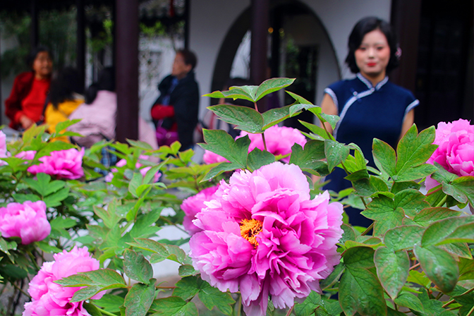 墨案银盘纤笔秀,廊亭曲径翠榴花。