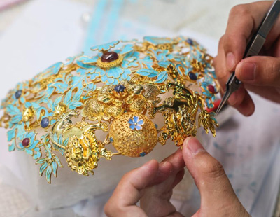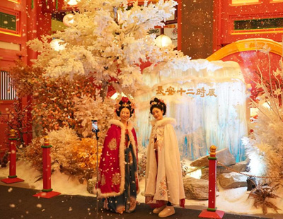 11月25日,身着传统服饰的观众在“中国历代绘画大系”典藏馆内参观。
