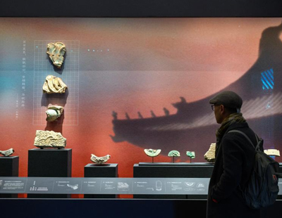 11月28日,大陆高校师生赴台访问团一行在台北参观林安泰古厝民俗文物馆。图为大陆师生与乒乓球世界冠军马龙体验拓印。