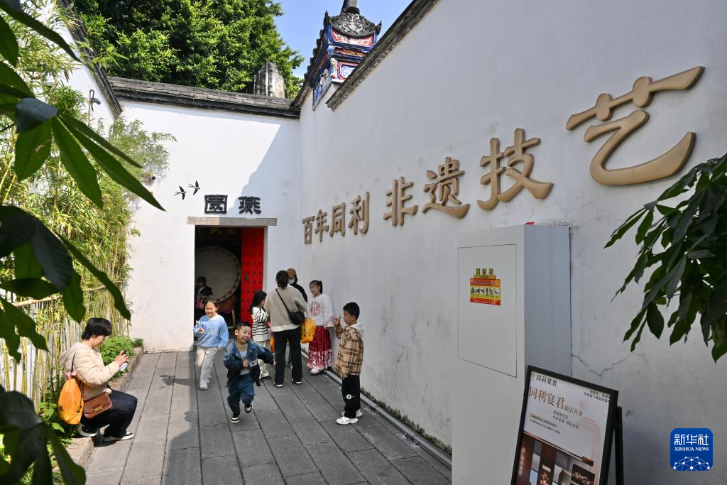 3月8日,家长带领小朋友游览福州三坊七巷同利肉燕非遗文化体验馆。