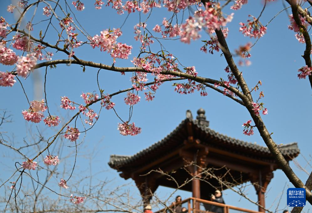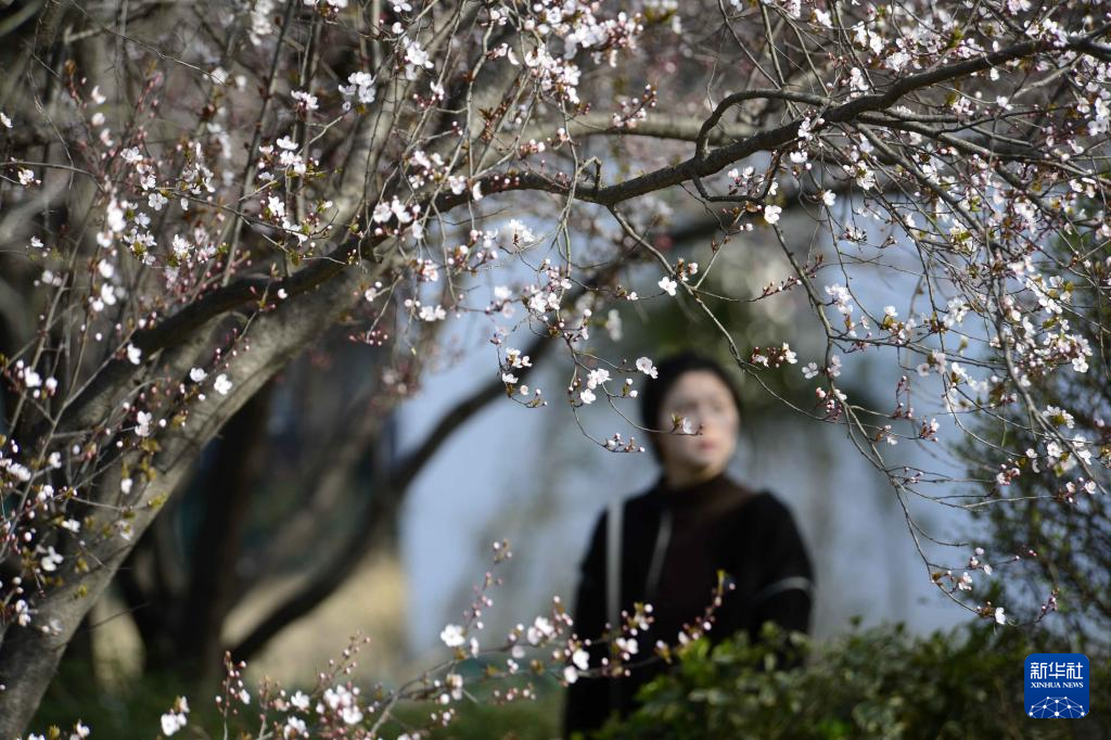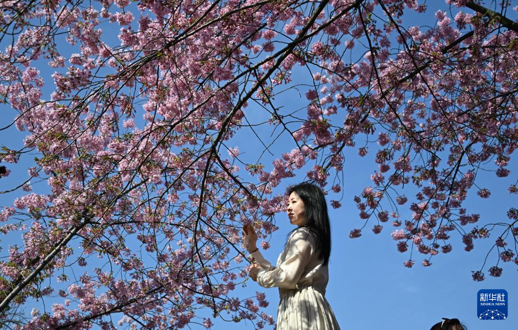 3月18日,游客在湖北省武汉市东湖樱园赏花。