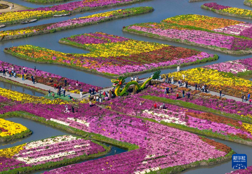 11月6日,人们在江苏泰州兴化市千垛景区赏菊游玩(无人机照片)。