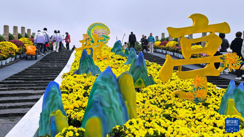 10月25日,人们在河南省开封市举行的以“菊韵宋风,大美中国”为主题的中国第十五届菊花展览会主会场龙亭景区观赏菊花。