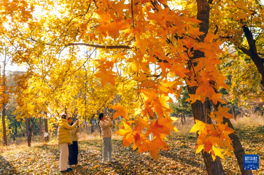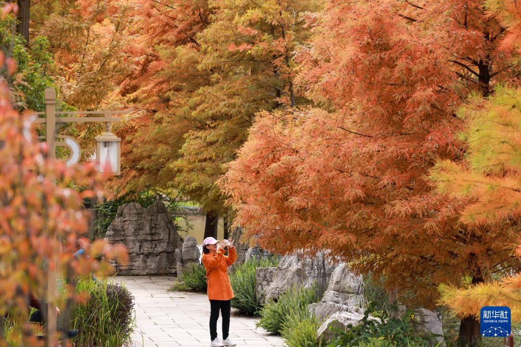 11月3日,河北省遵化市市民在一处公园赏景拍照。