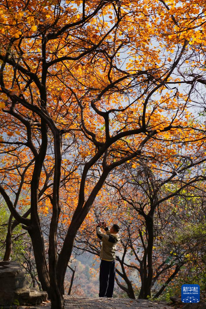 11月2日,游客在河南省沁阳市神农山景区赏景拍照。