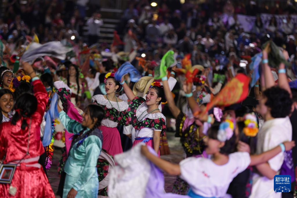 11月22日,在墨西哥首都墨西哥城宪法广场,儿童和青少年参加语言文化节活动。