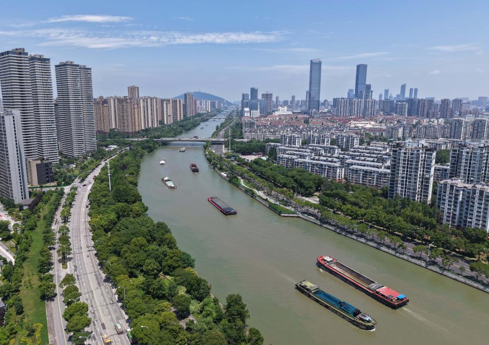 鸟瞰大运河无锡段(2025年6月27日摄,无人机照片)。(还月亮 摄)