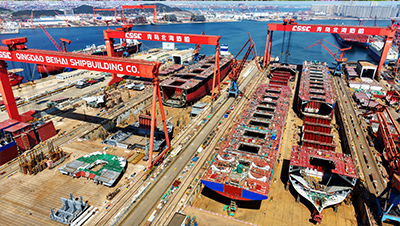 青岛北海造船生产繁忙,多型巨轮加紧建造。企业手持订单 91 艘、合同额近 600 亿元,排产已至 2030 年。