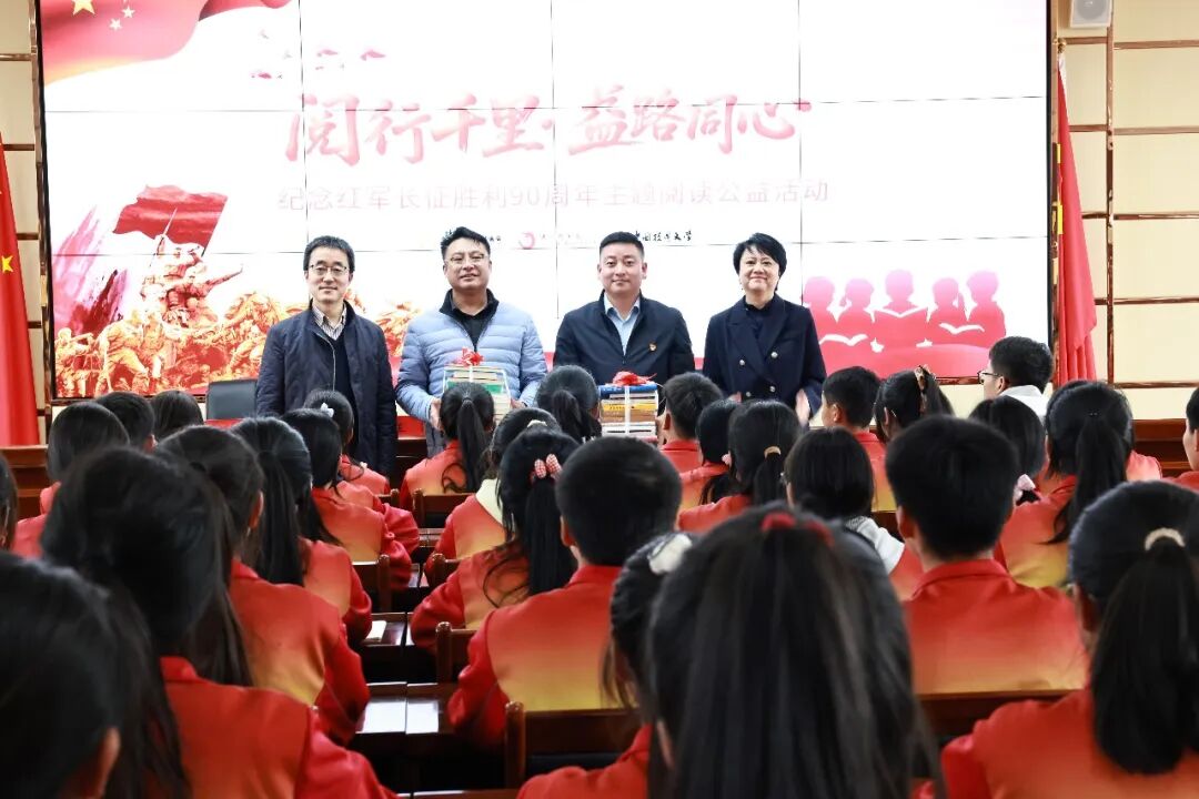 随后,京甘两地公益家庭以视频形式发布阅读帮扶计划,倡议两地青少年共读红色经典、共抒时代心声、同撰长征主题征文,以真情联结起跨越千里的爱心纽带。临潭三中八年级陈紫茜同学代表甘南少年发出阅读倡议,展现新时代青少年奋发向上的精神风貌。中国作家协会及中国儿童少年基金会相关领导向甘南州十所学校捐赠图书与期刊,让红色文脉浸润校园,以公益助力甘南校园文化建设。